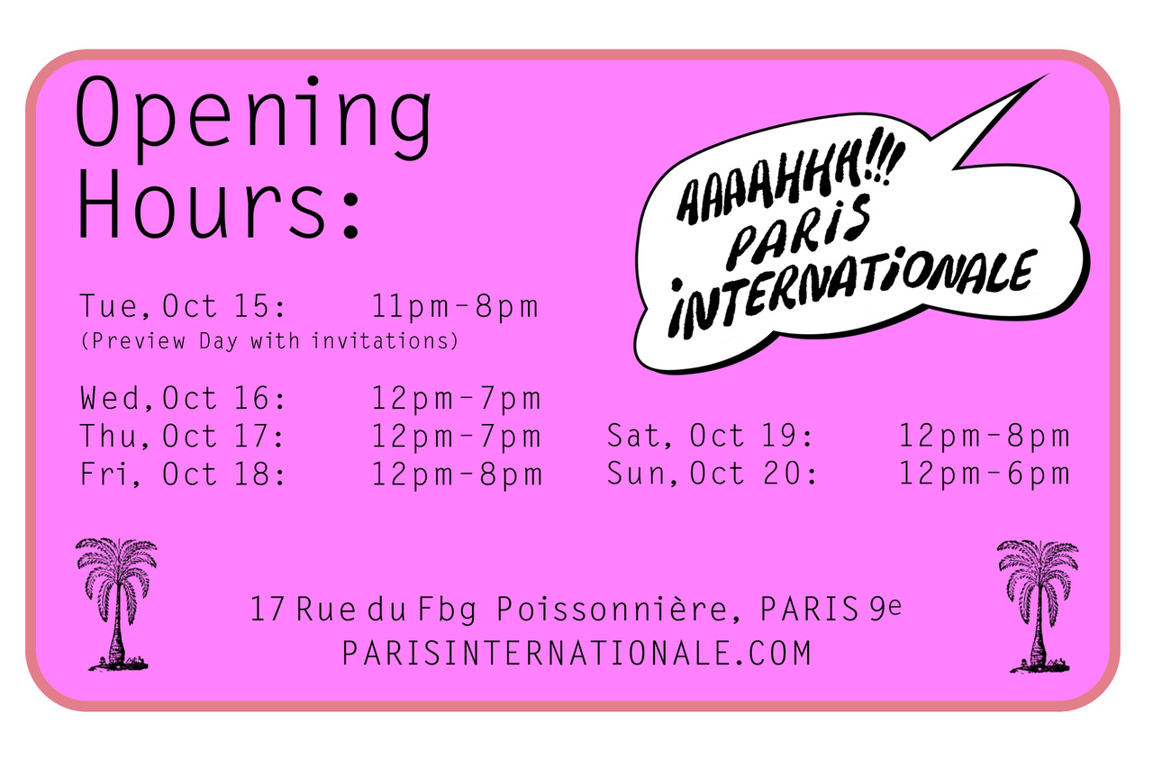 Participants at the fair are selected both for their work in local and international contexts as well as the specific projects that they will bring to Paris. Aside from these leading galleries and their artists that together drive the discourse in contemporary art, Paris Internationale also regularly hosts non-profit spaces, which aren’t charged a participation fee to make their contributions to contemporary art available to an international audience.