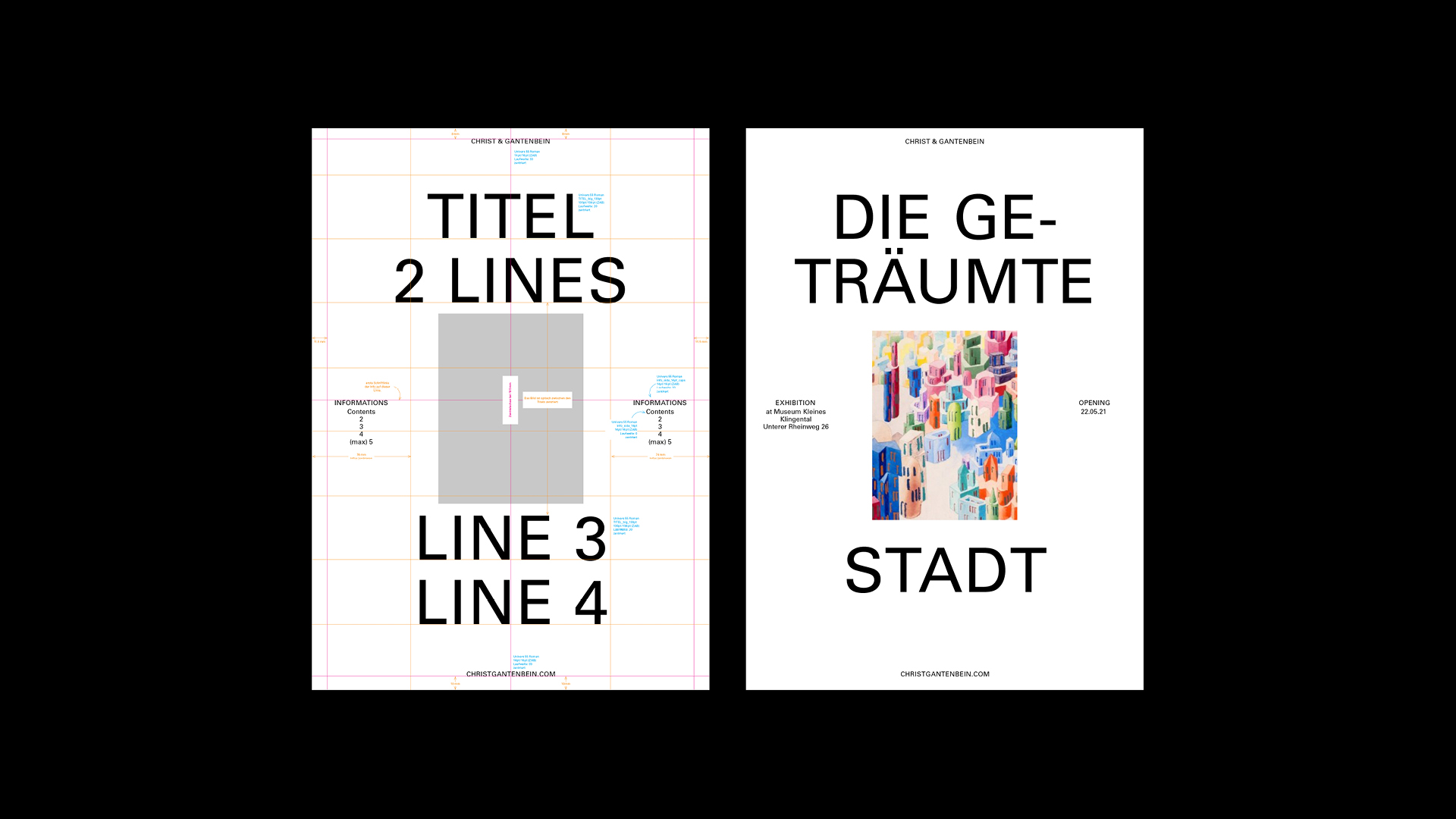Visual Identity and website for Christ & Gantenbein. This corporate identity is based on the use of sans-serif typography, with the typefaces Univers & Rand. The logotype composed in Univers 55, expresses a factual and subtle elegance. The symmetry as a graphic system, brings clarity and a rational equilibrium to the ensemble. All tools of communication follow the logotype guidelines. In addition to the main font Univers, the second font, Rand Black, is used throughout as a small title to proved contrast, as well as work in smaller spaces.The connection between the digital materials (website, icons, social media etc) and the printed materials (stationary, printed presentations, posters etc) can be seen not only in the logotype, but in the general use of symmetry and balance. Every application of the logotype and accompanying text reflects these principals.